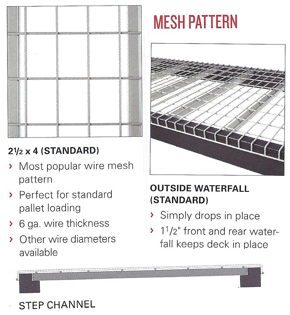 Interchangeable with most storage racks. Constructed of round gray powder coat wire. Made for pallet racks, storage racks, selective racks, and the food industry.