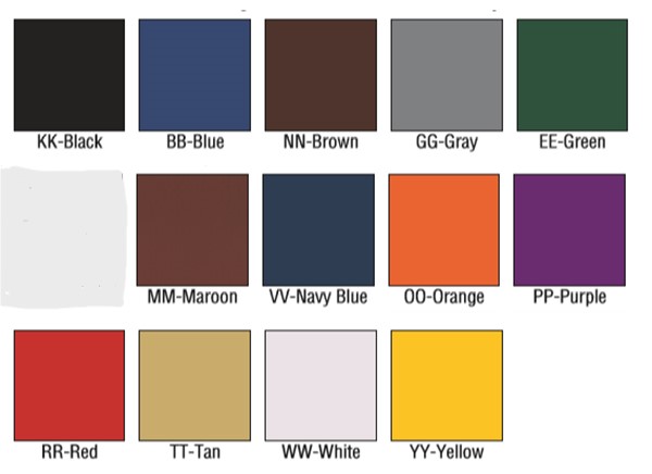 - Available in 13 Colors: Black, Blue, Brown, Gray, Green, Maroon, Navy Blue, Orange, Purple, Red, Tan, Yellow, and White